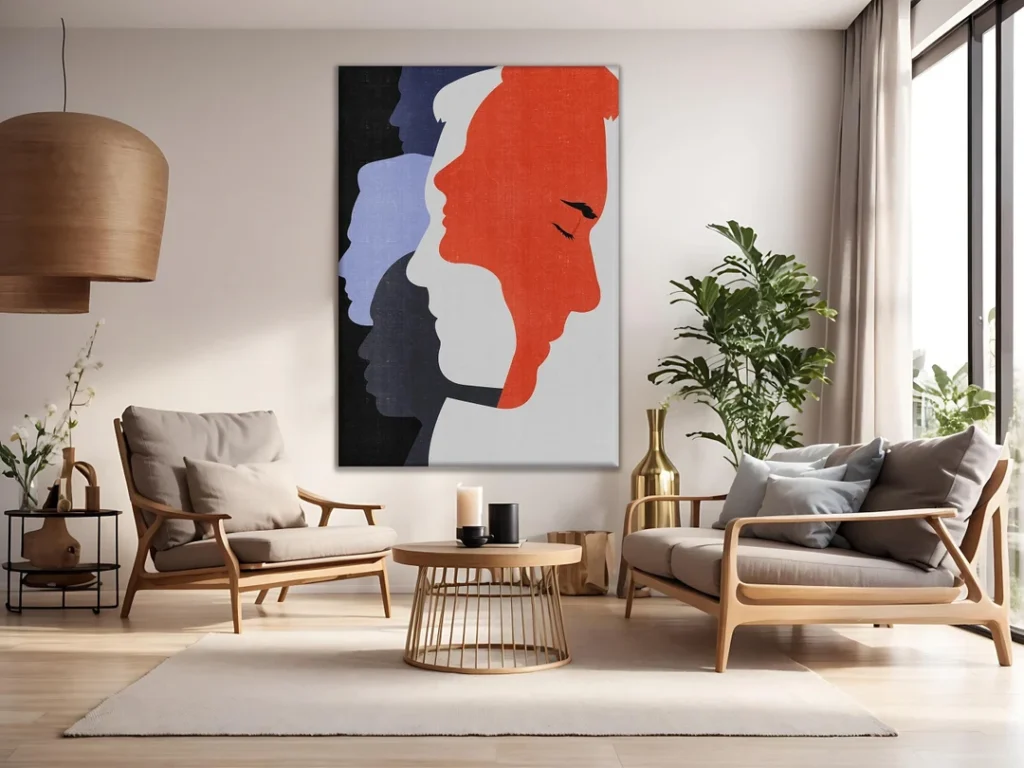 Placing a single large canvas above the sofa, bed, or fireplace adds a high-end gallery feel to the space.